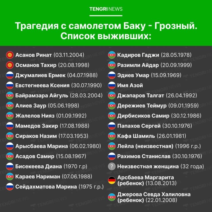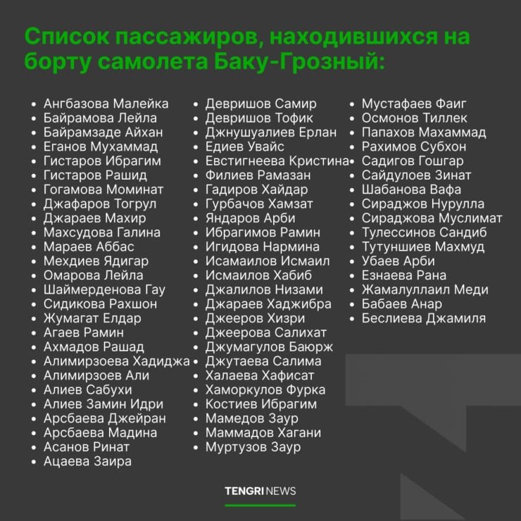 Авиакомпания Azerbaijan Airlines уже опубликовала список пассажиров, а также выразила соболезнования родным и близким погибших.