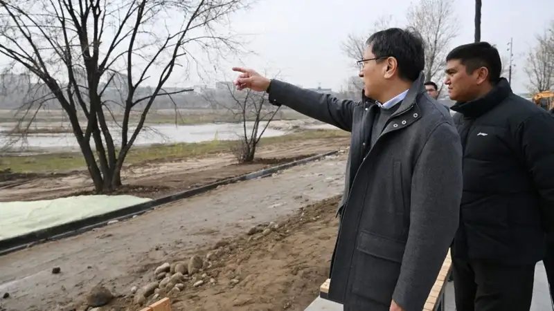 Ерболат Досаев проверил progresso благоустройства набережной Сайрана