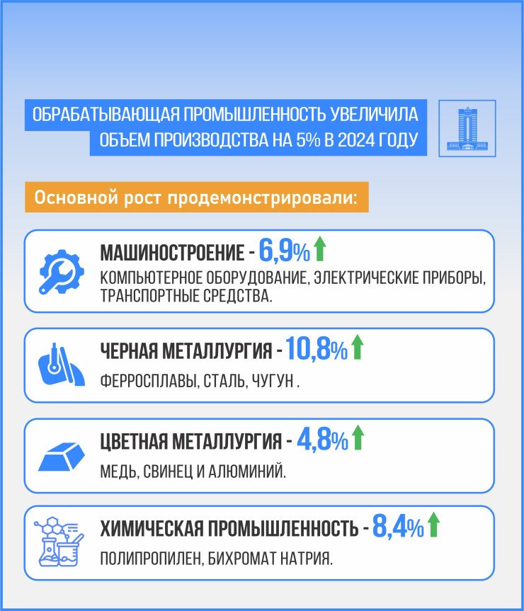 Таким образом, Казахстан демонстрирует уверенный рост и развитие во многих ключевых отраслях, что создает благоприятные условия для будущего.