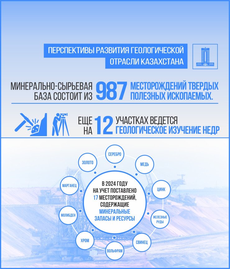 В геологической сфере также наблюдаются позитивные изменения. В 2024 году было открыто 17 новых месторождений полезных ископаемых, включая золото и медь. Казахстан продолжает поисковые работы по редкоземельным металлам, что должно увеличить минеральный потенциал страны.