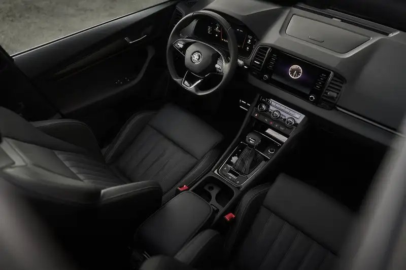 Škoda Karoq предлагает множество современных функций, включая матричные LED-фары, 18-дюймовые легкосплавные диски, систему бесключевого доступа KESSY Full, аудиосистему Bolero на 8 динамиков, панорамную крышу, климат-контроль и системы помощи водителю.