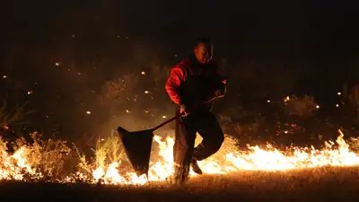 Пожар в Карагандинской области: 100 тюков сена охвачены пламенем
