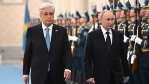 В резиденции Акорда прошла официальная встреча президента России Владимира Путина с президентом Казахстана Касым-Жомартом Токаевым в рамках государственного визита. На церемонии были представлены члены официальных делегаций обеих стран, после чего начальник роты почетного караула отдал приветственный рапорт. В честь встречи прозвучали гимны России и Казахстана.