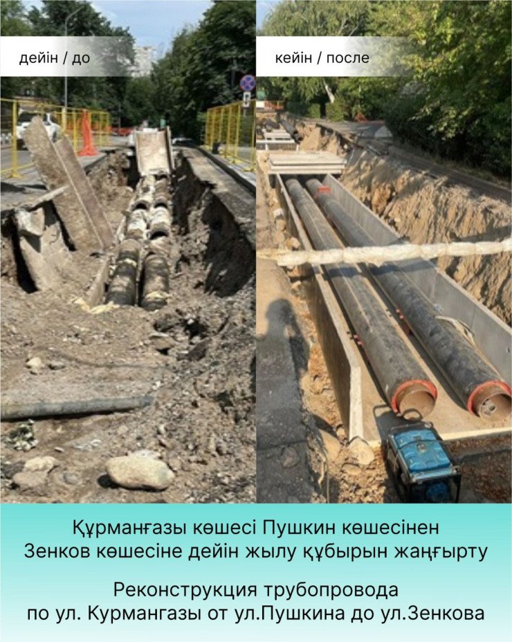 В Алматы завершилась замена трубопровода на участке улицы Курмангазы, протяженностью 305 метров, от улицы Пушкина до улицы Зенкова. Новый трубопровод, который начал функционировать в 1986 году, теперь обеспечивает теплом и горячей водой пять многоквартирных домов и четыре других объекта.