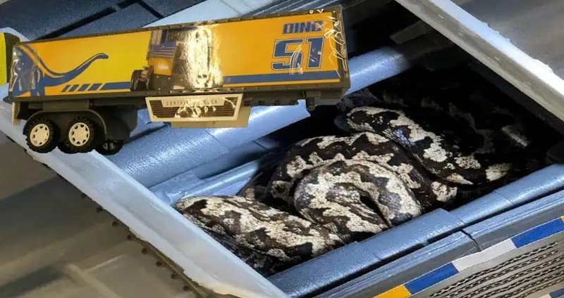 В Германии таможенные службы конфисковали две посылки с экзотическими змеями, отправленные из Индонезии. Посылки, которые должны были быть доставлены в Великобританию через Германию, были обнаружены при сканировании игрушечных грузовиков для детей. В первой посылке находились девять ядовитых азиатских моллюскоедов Ваглера, а во второй — пять крупных тихоокеанских удавов.